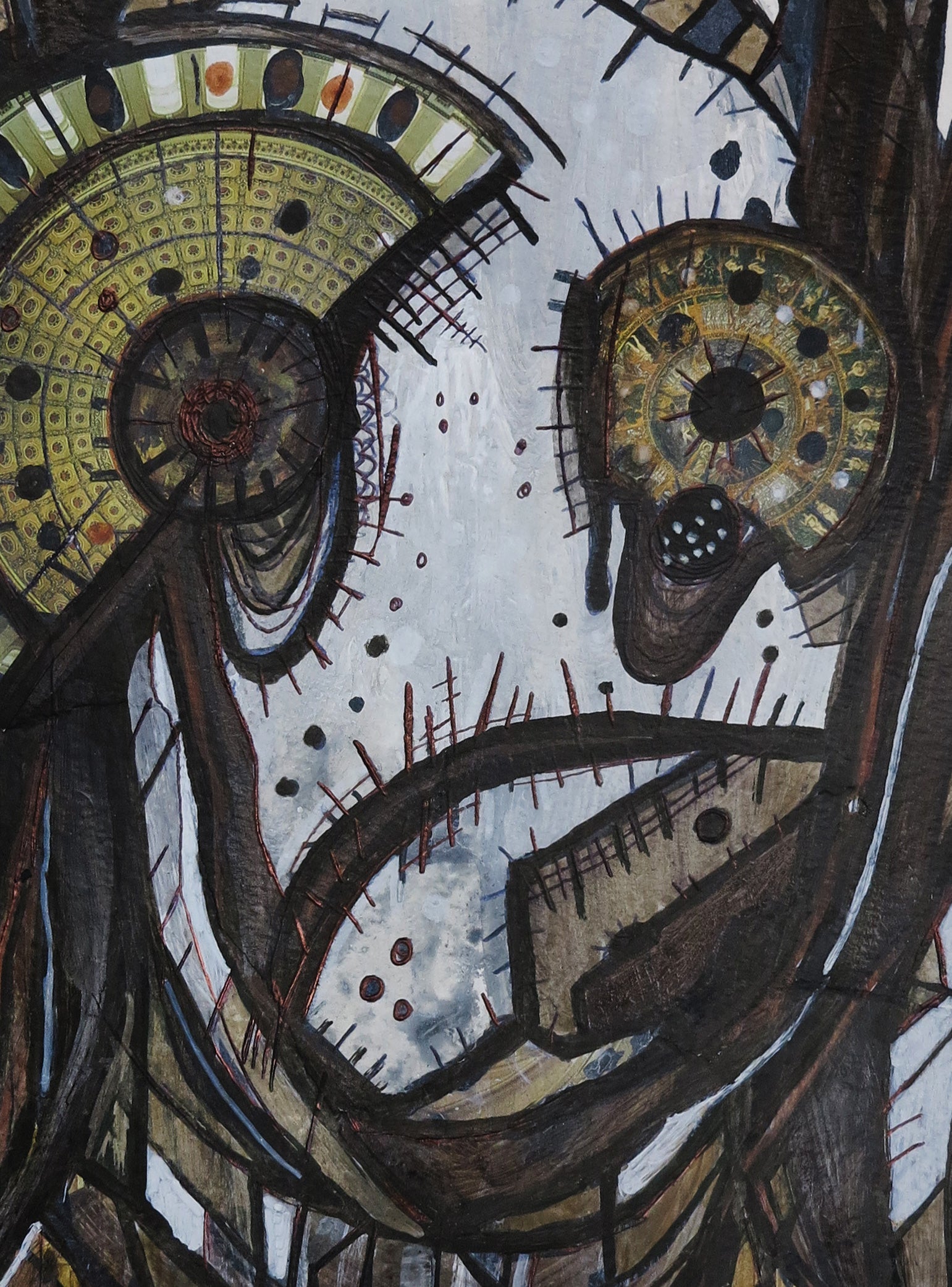 Acrylic, collage, ink, and collage on paper